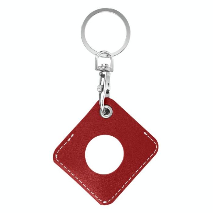 Square PU Leather Case Shockproof Anti-scratch Protective Cover with Keychain Ring Loop For AirTag(Red)