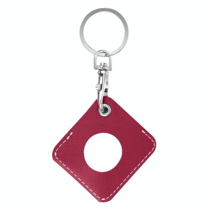 Square PU Leather Case Shockproof Anti-scratch Protective Cover with Keychain Ring Loop For AirTag(Rose Red)