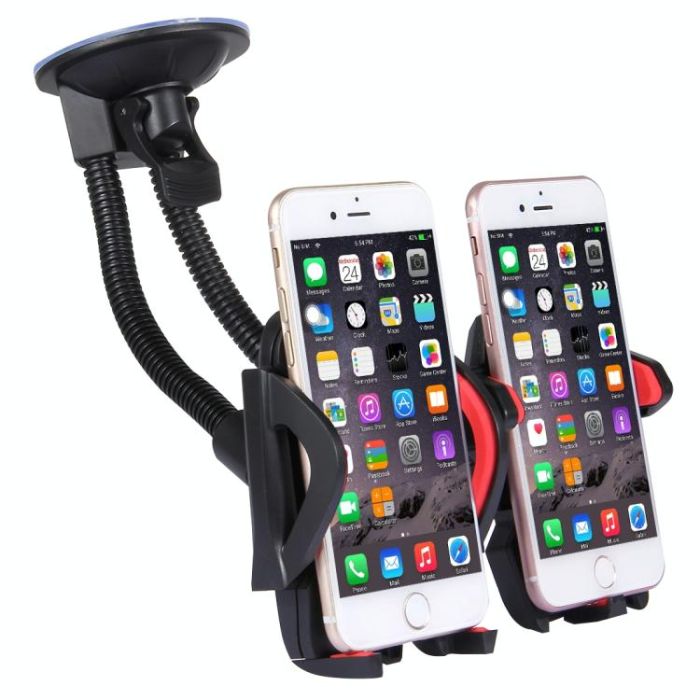 Suction Cup Couple Car Mount Holder Stand Suction Bracket with Adjustable Goose Neck for GPS & PDA & MP4, For iPhone, Samsung, Huawei, Xiaomi, HTC and Other Smartphones(Red)