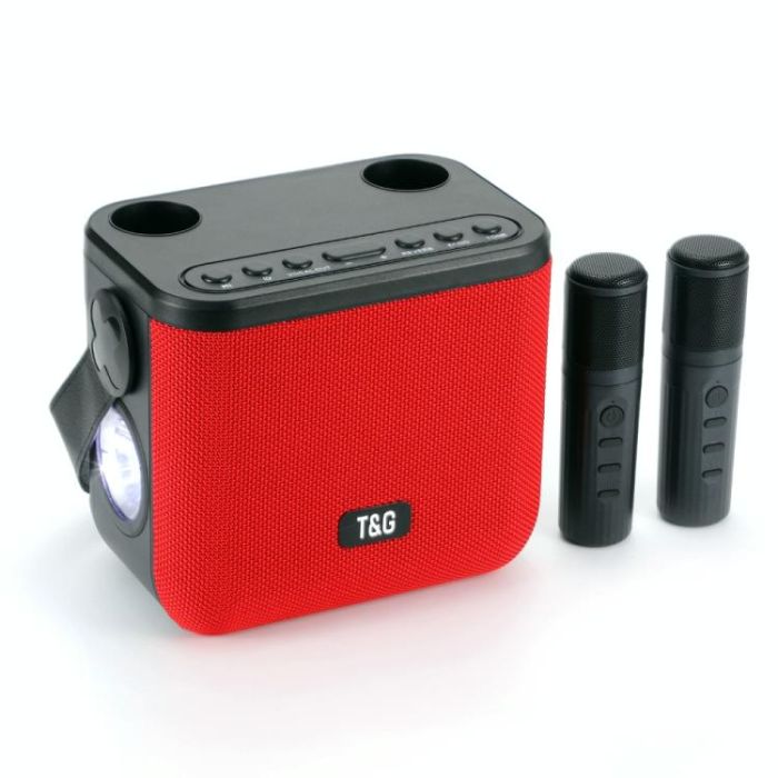 T&G TG545DK Home Handheld Dual-microphone KTV Wireless Bluetooth Speaker with Flashlight(Red)