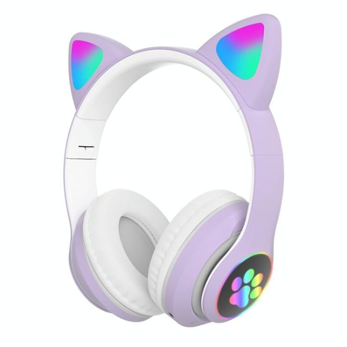 T&G TN-28 3.5mm Bluetooth 5.0 Dual Connection RGB Cat Ear Bass Stereo Noise-cancelling Headphones Support TF Card With Mic(Purple)