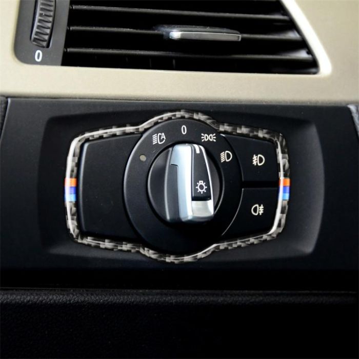 Three Color Carbon Fiber Car Headlight Switch Decorative Sticker for BMW E90 / E92 / E93 2005-2012 / 320i / 325i, Thin Version