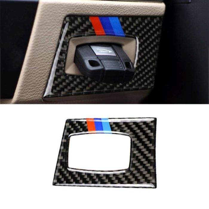 Three Color Carbon Fiber Car Right Driving Ignition Switch Decorative Sticker for BMW E90 / E92 2005-2012