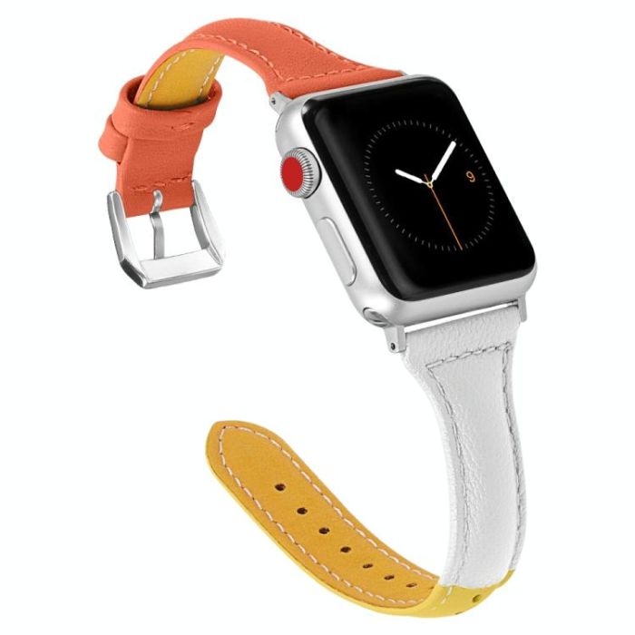 Three-color T-shape Leather Watch Band For Apple Watch Series 9&8&7 41mm / SE 3&SE 2&6&SE&5&4 40mm / 3&2&1 38mm (Yellow White+Orange)