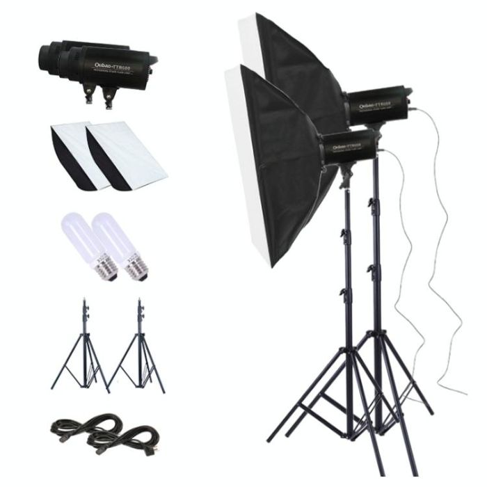 15. Shipping list: Oubao TTR600W x2, soft box x2, bulb x2, lamp stand x2, power cord x2, flash trigger x1.
