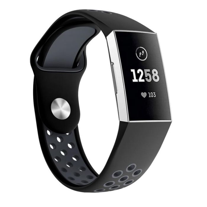 Two-color Round Hole Silicone Watch Band for Fitbit Charge 3, Watch Band Size:145-210mm(Grey)